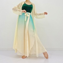 粉墨千秋米色绿色雪纺渐变开衩飘逸阔腿裤中国风古风开衫吊带套装¥138