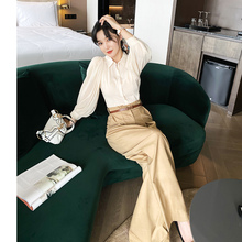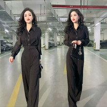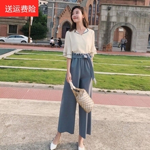 网红女神范时尚套装修身衬衫长袖雪纺T恤高腰气质阔腿裤两件套潮¥138