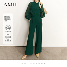 Amii2022年秋新透视衬衫阔腿裤女雪纺上衣休闲裤子套装时尚两件套¥289