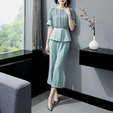 21夏季新款时尚圆领短袖背拉链收腰雪纺衫阔腿裤套装两件套215309¥360