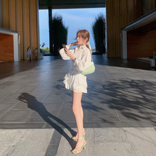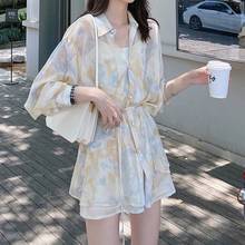 洋气减龄套装女夏季欧货网红收腰显瘦时尚雪纺衬衫阔腿短裤两件套¥49.8
