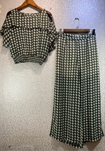 时髦小众印花时尚套装女2022夏季新款短袖雪纺衫高腰阔腿裤两件套¥329