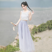 梅子熟了.汉 原创设计国风抽褶吊带上衣雪纺长款仙气阔腿裙裤女夏¥79