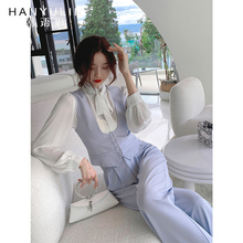 气质高级感套装2022秋装新款雪纺上衣马甲阔腿裤时尚二件套女¥229
