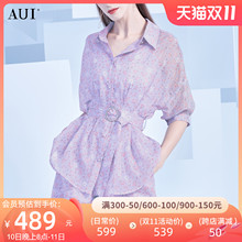 AUI气质雪纺印花衬衫套装女夏2021新款小个子休闲阔腿短裤三件套¥599