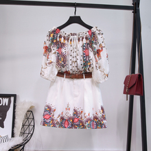 高档21夏装新款女装度假t一上肩印花雪纺衫字衣高裤阔腿短腰两奢¥253