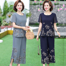 Yd夏装雪纺衫女上衣夏季中老年妈妈装两件套时尚洋气女装阔腿裤套¥155