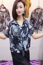 印花雪纺衬衫女蝙蝠袖2020夏装洋气收腰系带遮肚网红小衫配阔腿裤¥59