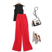 高腰阔腿裤女夏季新款气质无袖雪纺衫垂坠感裤子休闲时尚两件套装¥99