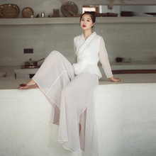 棉麻记原创汉服领雪纺开衫2021夏季新款复古文艺宽松阔腿裤套装女¥195