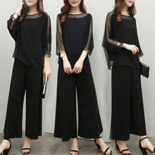 2022新款夏装雪纺衫上衣裤两件套阔腿裤大码休闲时尚装套装女洋¥198