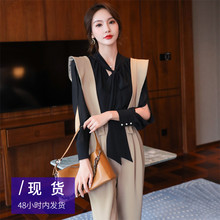 高端职业套装夏天气质V领无袖衬衫高腰显瘦雪纺阔腿裤女夏九分裤¥405.68