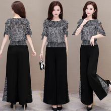 时尚减龄阔腿裤套装女2021新款韩版夏装短袖雪纺衫两件套潮¥236