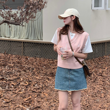 芝士兔自制 字母刺绣学院百搭马甲背心小众简约复古百搭针织衫女¥65.9