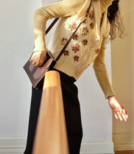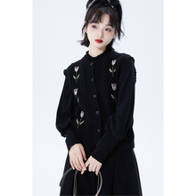 小葱良裁 黑色郁金香刺绣针织马甲背心女冬季宽松慵懒风短款开衫¥199