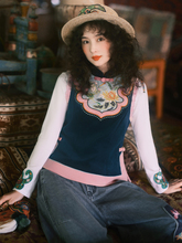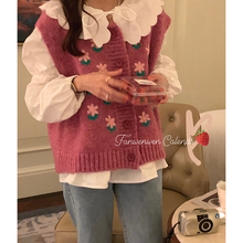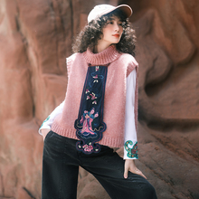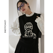 爱爱丸 手工童趣绣花拼色针织毛衣背心女宽松内搭外穿复古减龄¥158.01