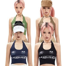 PUKI刺绣挂脖背心 抹胸露腰美式打底基础针织吊带外搭无袖上衣女¥158