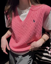 字母刺绣麻花V领马甲~韩国东大门新款秋季百搭叠穿背心针织上衣女¥39.9