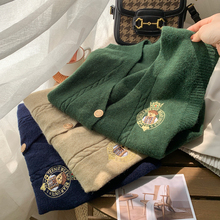 老陈同学 早秋针织马甲背心女新款2022外搭宽松狮子刺绣无袖马夹¥109