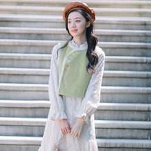 清风故人 微笑向暖复古国风百搭马夹 绿色内搭毛呢刺绣马甲背心女¥239