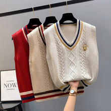 学院风刺绣小熊V领麻花针织马甲背心女秋冬休闲复古毛衣马夹上衣¥39.8