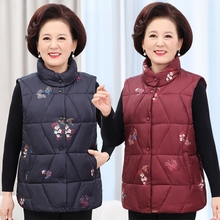 妈妈棉马甲女秋冬季短款绣花羽绒棉坎肩背心大码宽松中老年人马夹¥88