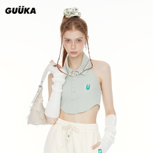 GUUKA潮牌浅绿色挂脖polo领刺绣背心女夏外穿露背辣妹装性感显瘦¥79