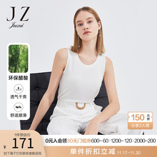 JZ玖姿简约纯色弹力背心女2022夏季新款醋酯刺绣字母通勤无袖上衣¥201