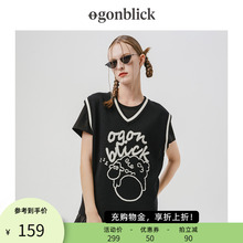 ONLY2022冬季新款时尚精致刺绣低圆领德绒背心T恤女|122303004¥109