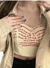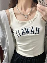 乌77甜辣休闲奶杏色背心女夏小个子时髦佰搭字母刺绣修身内搭上衣¥29.9