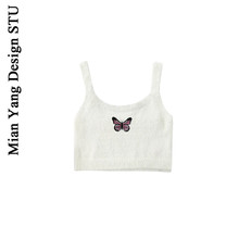 棉洋 美式BM风复古刺绣蝴蝶短款背心女 纯欲风针织吊带打底上衣夏¥39