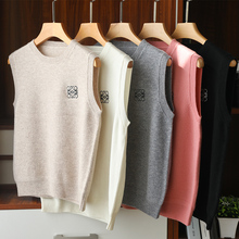 刺绣秋冬马甲女针织衫宽松圆领无袖毛衣背心羊毛毛线坎肩外穿马夹¥98