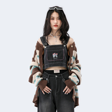 APEA美式辣妹刺绣提花吊带上衣女挂脖式毛织甜酷炸街撞色背心外穿¥99