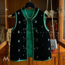 新中式加棉真丝绒马夹秋装2022新款立领钉珠纽扣重工刺绣背心百搭¥289