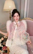 小善之家中国风冬季夹棉马甲刺绣棉袄中式兔毛旗袍粉色马夹背心女¥259