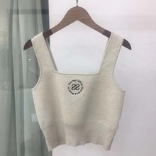 2022春夏新款S字母刺绣修身针织吊带背心女内搭外穿短款方领上衣¥135