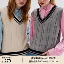 ziziFei秋冬季外穿马夹复古条纹刺绣美式校园V领毛针织马甲背心女¥139