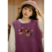爱爱丸 手工绣花针织毛衣背心女叠穿桔梗紫波浪边文艺复古上衣¥158.01