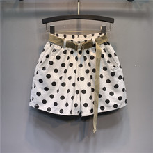欧洲站2022夏新款复古波点松紧高腰宽松大码A字阔腿短裤休闲裤女
