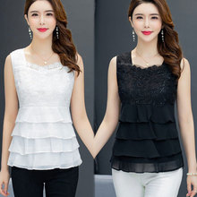 无袖蕾丝雪纺吊带背心女2022年夏季新款欧美风宽松大码打底上衣潮