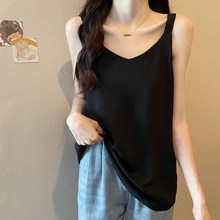 黑色雪纺吊带背心女夏外穿性感宽松深v领内搭丝绸缎面打底衫上衣