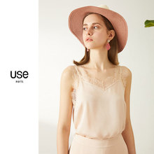 粉色蕾丝吊带女USE2022春夏装薄款宽松V领内搭雪纺打底花边小背心