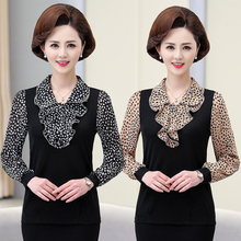 中老年妈妈春秋装新款时尚洋气雪纺上衣女遮肚长袖t恤女针织小衫