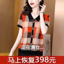冰丝短袖女t恤夏季薄款娃娃领针织小衫高档洋气雪纺大码遮肚上衣
