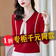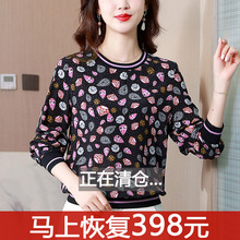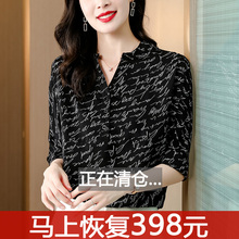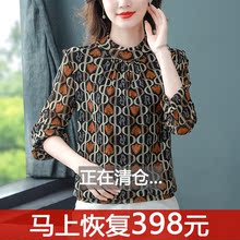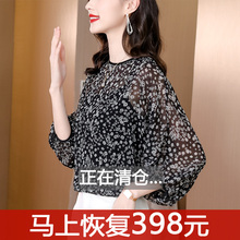 真丝小衫女长袖减龄漂亮洋气t恤早秋季新款妈妈宽松碎花雪纺上衣