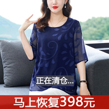 2022夏装新款妈妈洋气七分袖上衣中老年短袖T恤女时尚雪纺小衫潮