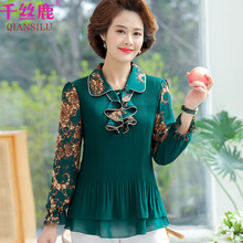 千丝鹿中年妈妈秋装上衣长袖t恤中老年女装打底衫春秋洋气雪纺衫