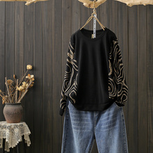 春秋大码200斤雪纺拼接宽松显瘦洋气复古圆领长袖T恤女上衣打底衫