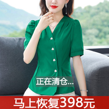 天丝衬衫女夏季薄款衬衣立领宽松显瘦短袖t恤别致泡泡袖雪纺上衣