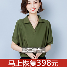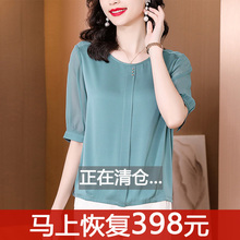 真丝桑蚕丝衬衫女短袖t恤夏季新款妈妈宽松大码夏装雪纺小衫上衣